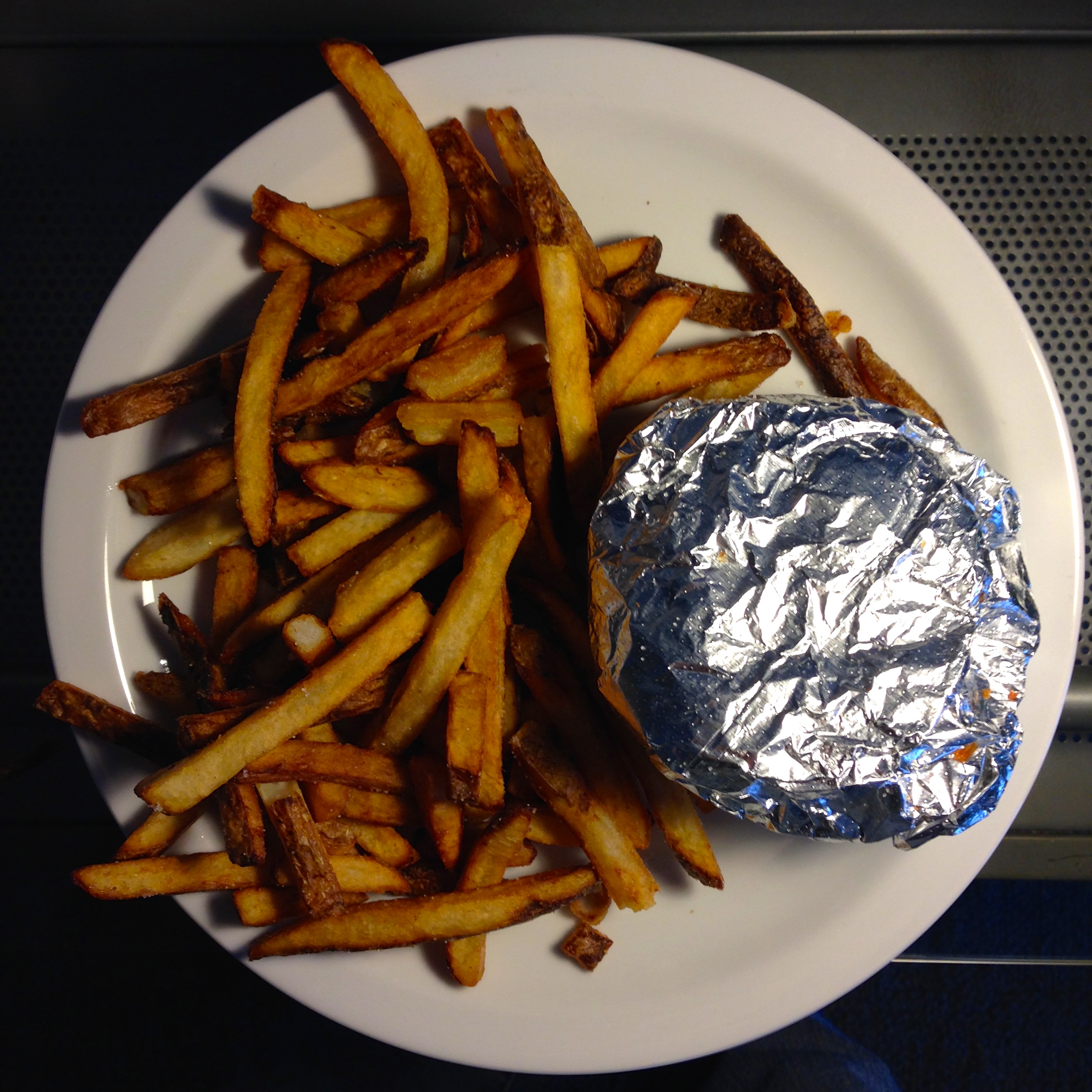 Wie eingangs gesagt, hat die Qualität bisher jedes Mal gestimmt, und es dauert nach der Bestelltung nur ca. 3 Minuten, bis die Nummer aufgerufen wird. Zwar gibt es sicherlich gemütlichere Restaurants, die noch bessere Burger auftischen. Aber im Gegensatz zu Läden wie McDonald’s oder Burger King — oder Krystal — kann man hier für ein oder zwei extra Dollars einen echten, frisch zubereiteten Burger und anständige Fritten bekommen. Übertreiben sollte man es mit diesem Essen natürlich trotz allem nicht. Deshalb hab ich mir als Limit auferlegt, höchstens einmal pro Woche hier einzukehren.